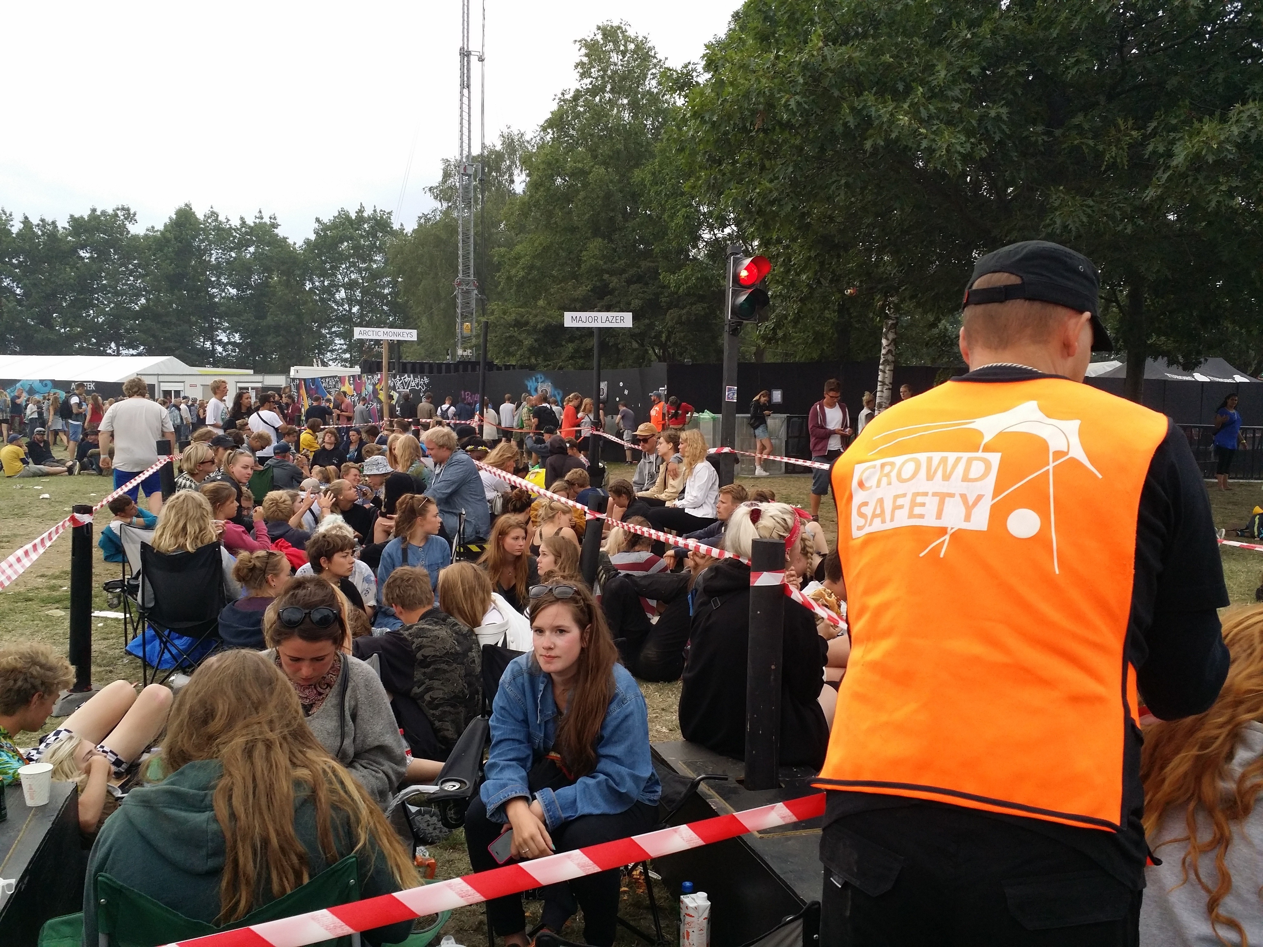 Mas tive que me preparar psicologicamente para o Roskilde festival . Foi uma grande surpresa quando abri o guia do festival e li o capítulo referente as medidas de segurança impostas pela organização. Na verdade, há um subitem dedicado apenas à segurança de palco. Lá está escrito bem claro que é expressamente proibido moshar ou surfar nas multidões durante os shows. Da mesma forma, antes do início de cada show estão lá as placas de aviso sobre isso. Existem também voluntários dedicados exclusivamente à segurança da platéia. Desde separadores de muvuca à fornecedores de água e ajuda médica se necessária.