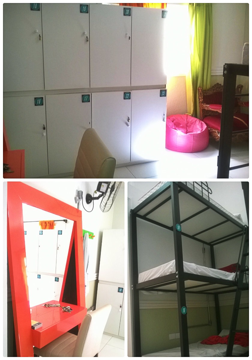 Fiquei oito noites no quarto feminino compartilhado. São oito camas e há um aproveitamento interessante do espaço. Há um cantinho com pufe, poltrona e penteadeira (há quanto tempo não me deparava com uma!), uma mini-área de convivência bem simpática. Nessa parte também ficam os lockers, que têm espaço bem razoável (dá para colocar uma mala de mão). Um ponto negativo aqui é que as camas todas têm tomadas, mas não têm luminária individual como informa o site. Ter sua própria iluminação quando você divide o quarto com mais sete pessoas faz muita diferença.