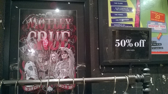 Todo o restante da loja é cuidadosamente pensado para que também remeta à cultura rock: logo na entrada, um balcão com vários lançamentos em vinil. Do outro lado, uma parede com belas fotografias de astros como Ozzy Osbourne. Instrumentos musicais e biografias de rock stars ocupam um outro canto.