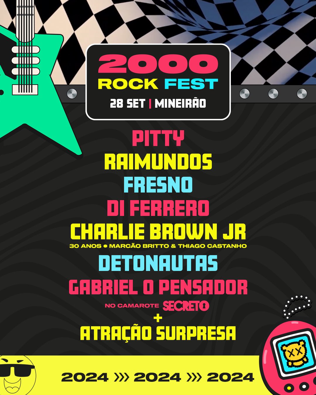 Pitty, Charlie Brown Jr 30 anos com Marcão Britto e Thiago Castanho, Detonautas, Di Ferrero, Fresno, Raimundos e Gabriel O Pensador formam o line up da segunda edição do 2000 Rock Fest, dedicado ao rock brasileiro dos anos 2000. O festival acontece no dia 28 de setembro, no Mineirão, em Belo Horizonte, com ingressos a partir de R$ 145 aqui.