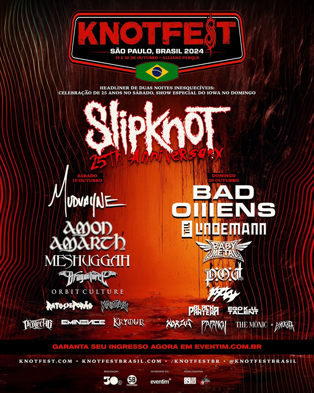 Em sua segunda edição no país, o Knotfest vai trazer mais de 20 bandas, que vão se apresentar nos dias 19 e 20 de outubro no Allianz Parque, em São Paulo.