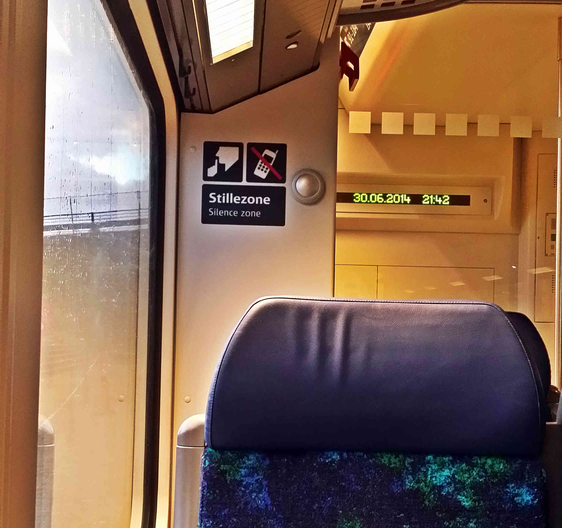 Também quando eu e a Pri voltávamos do Roskilde, estávamos bem cansadas e nos sentamos onde foi possível. Mas, quando vimos, era a silent zone( essa da foto acima)… Falando e rindo sobre as peripécias do dia, obviamente fomos interrompidas pela “fiscal” do silêncio do vagão.