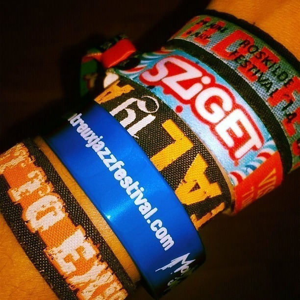 Nós já fizemos um #VideoSelfie só para mostrar a quantidade de souvenires que ganhamos/compramos nos festivais. Tem camisa, caneta, bolsa, copo. Todo tipo de lembrancinha que se encontra em lojas para turistas. E ainda tem um souvenir que só alguns festivais têm (majoritariamente os europeus): as pulseiras, a princípio substitutas dos ingressos, mas que acabaram se transformando em item de ~ostentação~ dos festivaleiros.