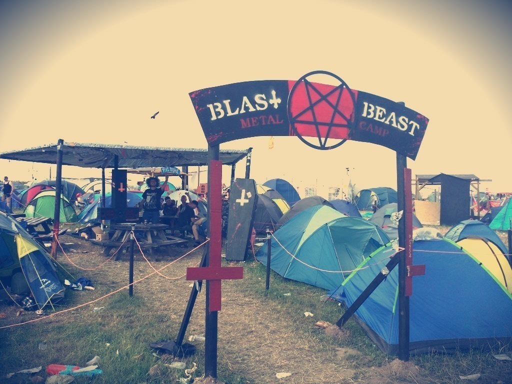 No terceiro dia do festivalando no Roskilde, voltamos ao local da epifania, o Blast Beast Camp. Tirei uma foto da frente do lugar, assim como fiz em todos os demais camps. A diferença é que os meninos e meninas da metaleiragem dinamarquesa nos chamaram para uma cerveja. Aceitamos a armadilha de satanás. Conversamos sobre o Sepultura, Sarcófago, Mutilator e outras bandas oitentistas brasileiras. Também apliquei algumas bandas novas do Brasil que estavam no meu celular. Ouvimos trocentas vezes a música “everybody dies”, da banda The Hell, que pareceu ser uma espécie de hino do camp esse ano.