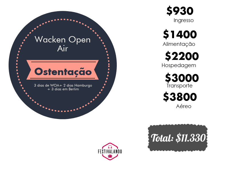 Você já fez algum orçamento com agência de viagem que leva para o Wacken? Já viu quantas casas numéricas tem o número mostrado para um pacote do Wakcen? Pois é, mesmo no modo festivaleiro ostentação, fazendo sua viagem de forma independente você pode economizar em torno de seis mil reais. Evidentemente que as agências oferecem alguns serviços diferenciados e às vezes é mais conveniente contratar pacotes. Neste post aqui a gente te fala de quando compensa comprar um pacote para festival.