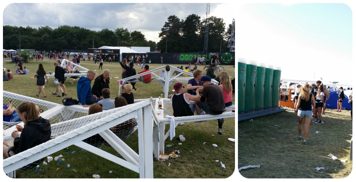 Como nem tudo é festa, notamos já no primeiro dia de evento muito lixo, muito mesmo, e banheiros químicos em estado deplorável (a Gra foi a corajosa da vez e encarou um deles). Não deixa de ser curioso, já que se vê exatamente o oposto nas ruas da Dinamarca. Eu e Gra usamos um banheiro público limpíssimo no centrão de Copenhague, com papel e sabão.