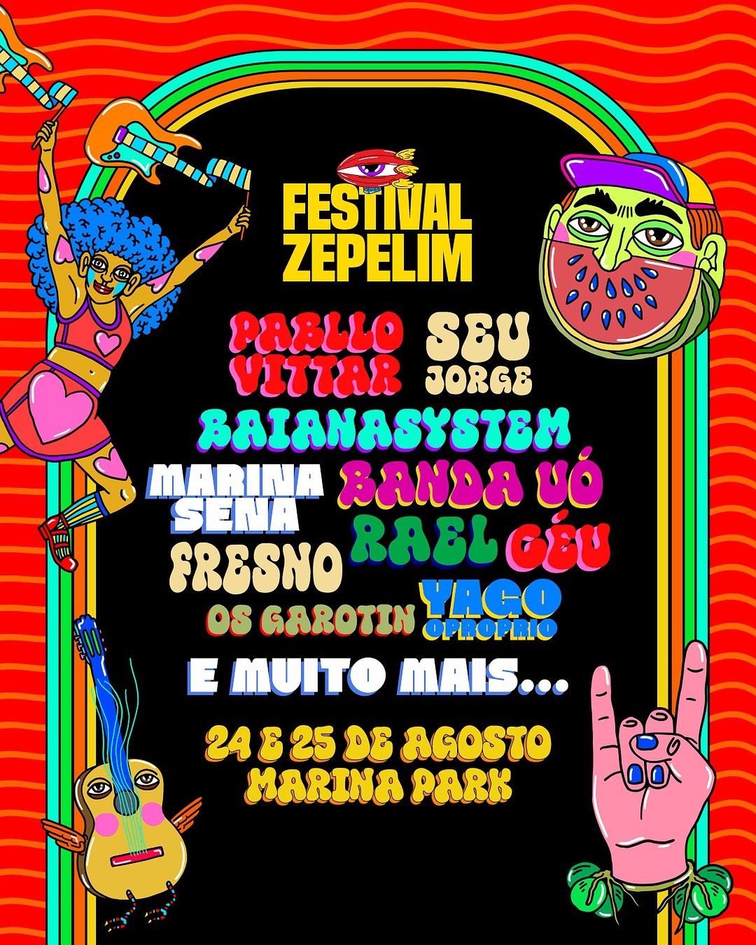 O festival Zepelim anunciou mais atrações da edição 2024, que acontece nos dias 24 e 25 de agosto no Marina Park, em Fortaleza. Pabllo Vittar, Baianasystem, Marina Sena, Rael, Os Garotin e Yago Oproprio se somam a Seu Jorge, Céu, Fresno e Banda UÓ, previamente confirmados. Mais atrações serão anunciadas em breve. Ingressos à venda aqui a partir de R$ 306.