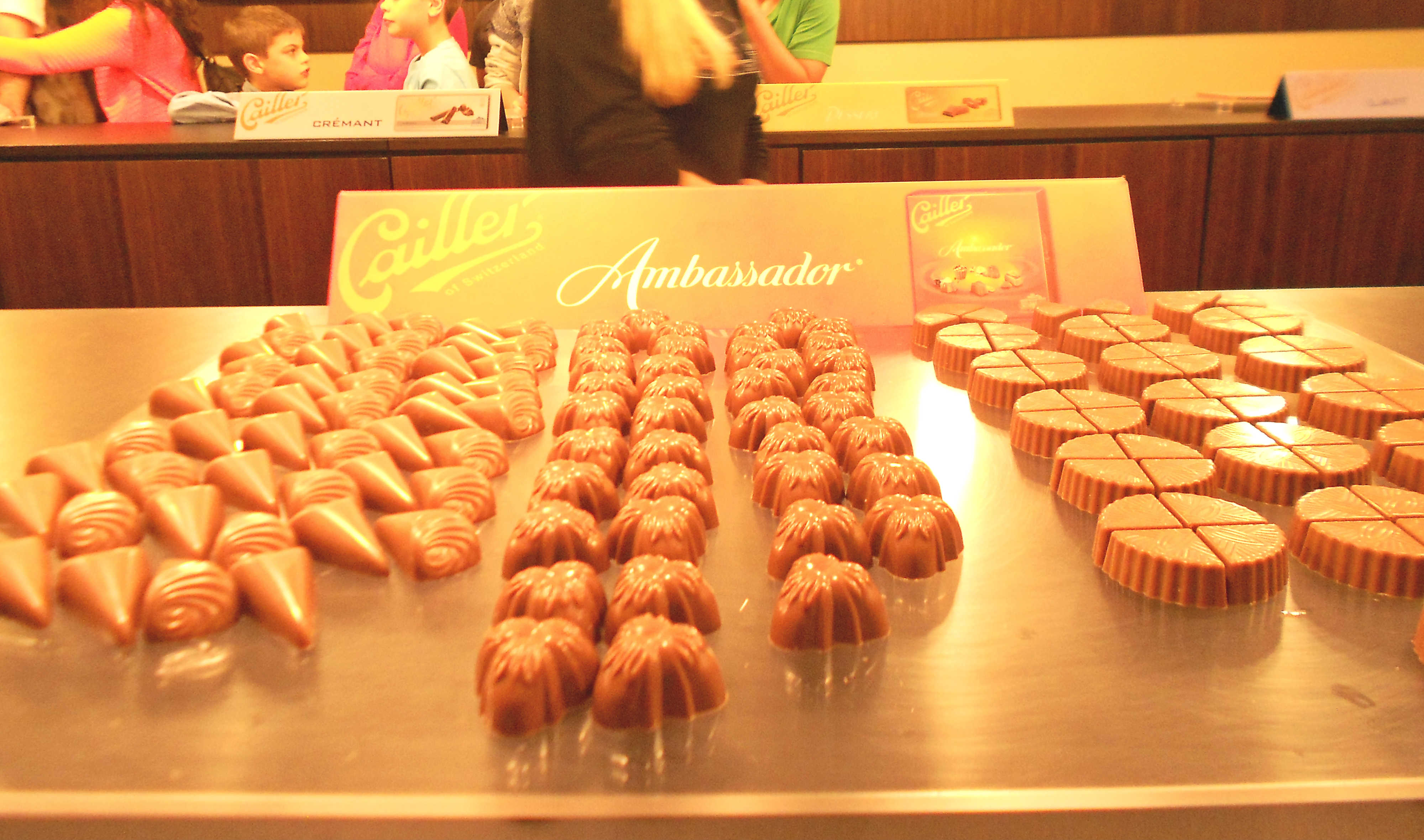 A visita a Broc é a segunda parte do trajeto do Train du Chocolat. Lá, o passeio é pela fábrica dos choclates Cailler, onde você vai degustar chocolates até pedir para parar. Em um outro post eu ainda vou contar em detalhes como é a visita, mas já adianto que há pelo menos 15 tipos de bombons e/ou barras à sua disposição e você pode comer quantos quiser. 😀