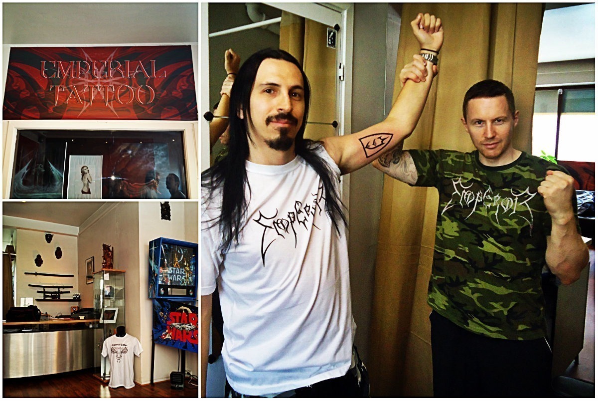 Notodden também é a cidade onde fica o estúdio de tatuagens Emperial Tattoo, que pertence a um dos bateristas do Emperor, o Trym Torson, figura simpatissíssima que ama o Japão e é doador de um projeto de proteção à Amazônia. Meu amigo Maza queria fazer sua primeira tatuagem, o logo da banda Emperor. Nada mais simbólico do que ser tatuado pelo próprio Trym! O maza teve uma tarde de um pouquinho de dor e a gente aproveitou a boa conversa e todos os conhecimentos culturais do músico/tatuador!